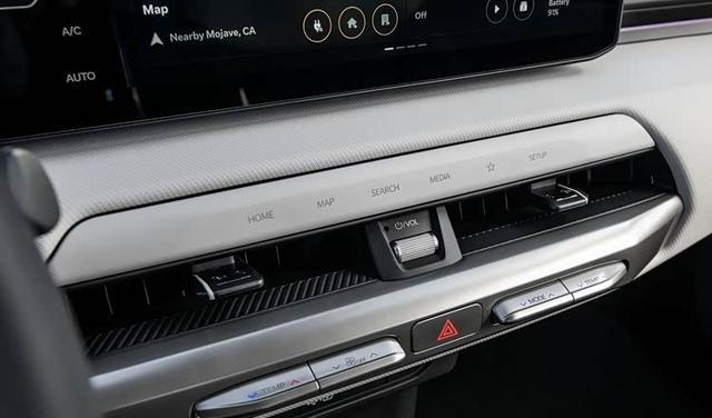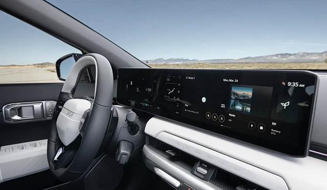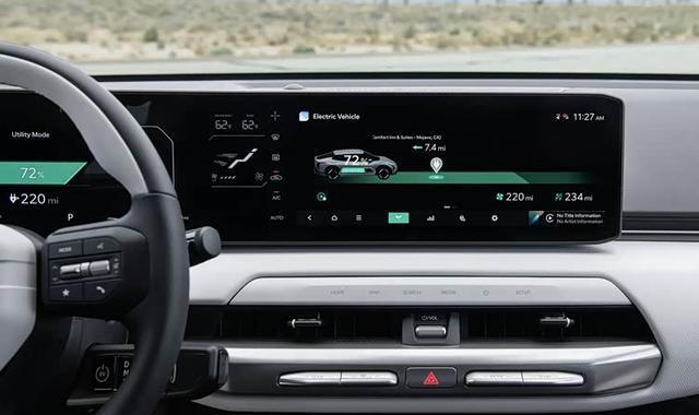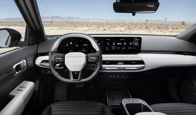 2026款起亚EV4的座舱延续了“对立统一”的理念,整体风格简洁。悬浮式中控台与双辐方向盘布局清晰,功能操作直观。中控部分由两块12.3英寸屏幕和一块5英寸空调屏组成,屏幕连成一体但分工明确。2026款起亚EV4的座舱核心是一套“ccNC”智能互联系统,支持OTA升级。
