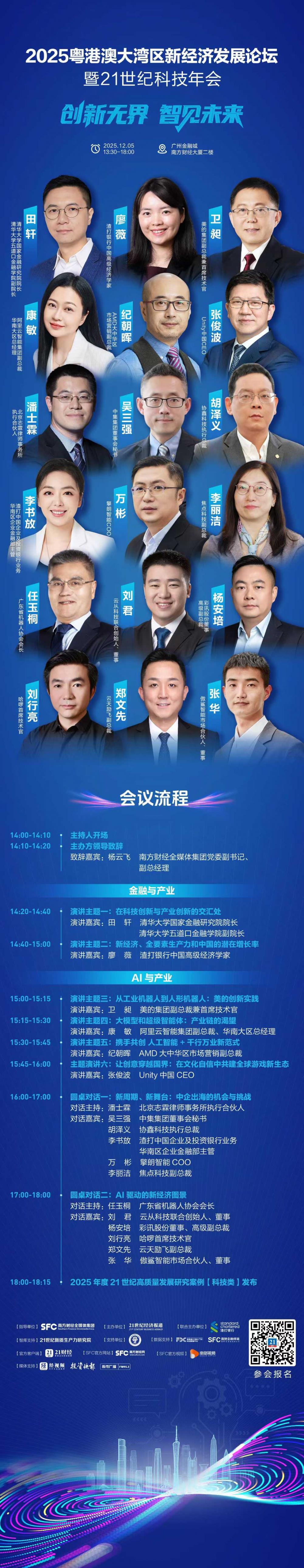 本场盛会汇聚商学大咖,聚焦金融赋能产业、AI融合应用等核心议题。从金融与产业创新交汇,到机器人、大模型等AI技术落地,再到中企出海新机遇探讨,18位重磅嘉宾+两场深度圆桌+案例发布,全程直击科技前沿与产业变革,和我们一起见证新经济的澎湃动能!